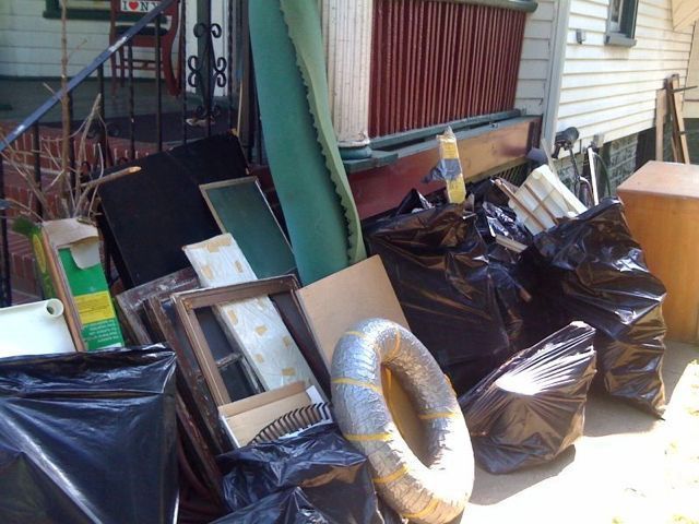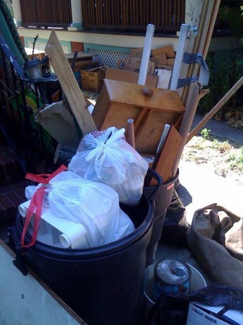 Junk wood furniture, junk scraps of cedar, junk piles of wiring, 3 junk air conditioners, 5 junk metal frame hiking backpacks with broken straps, a half-dozen junked piles of cross-country skis, junk kitchen utilities, a few garbage cans worth of junk scrap metal. Junk junk junk. As we were leaving it on the side of the house, prepped for Saturday’s bulk trash pickup, a Mexican man in rust-stained jeans hops out of a dark blue van and asks us, in trying English,